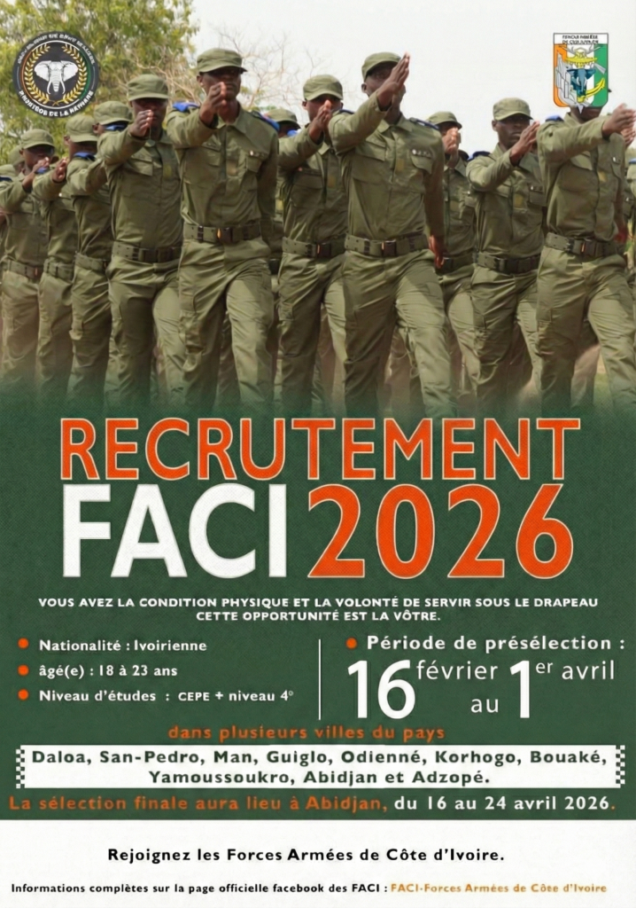 Recrutement Militaire des Forces Armées (FACI Côte d’Ivoire) — 2026